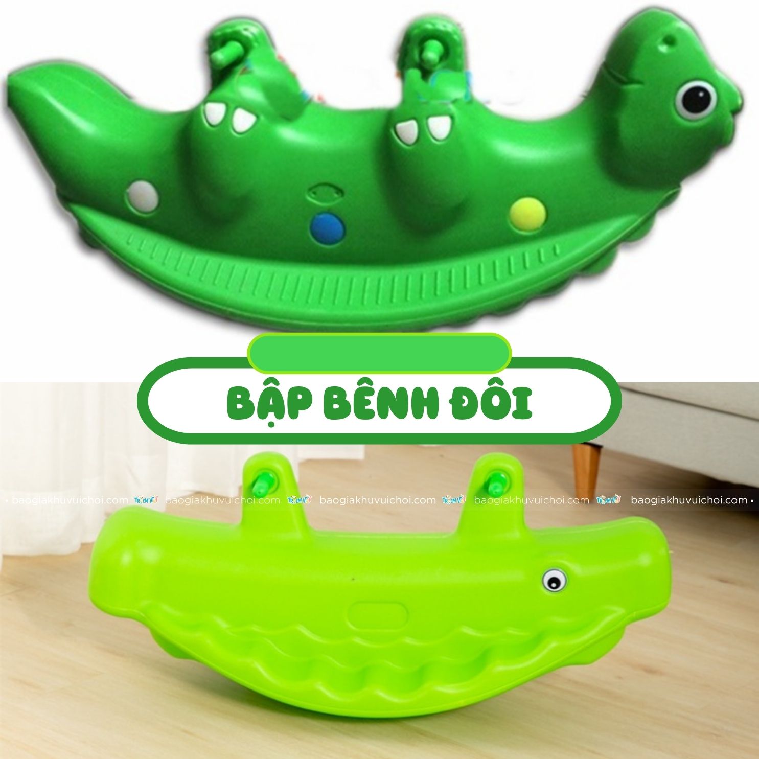 Bập bênh nhựa cho bé 2 đầu được thiết kế hai bé chơi, mỗi bé ngồi một đầu, dùng lực chân đẩy lên, xuống tạo nên sự chuyển động qua lại.