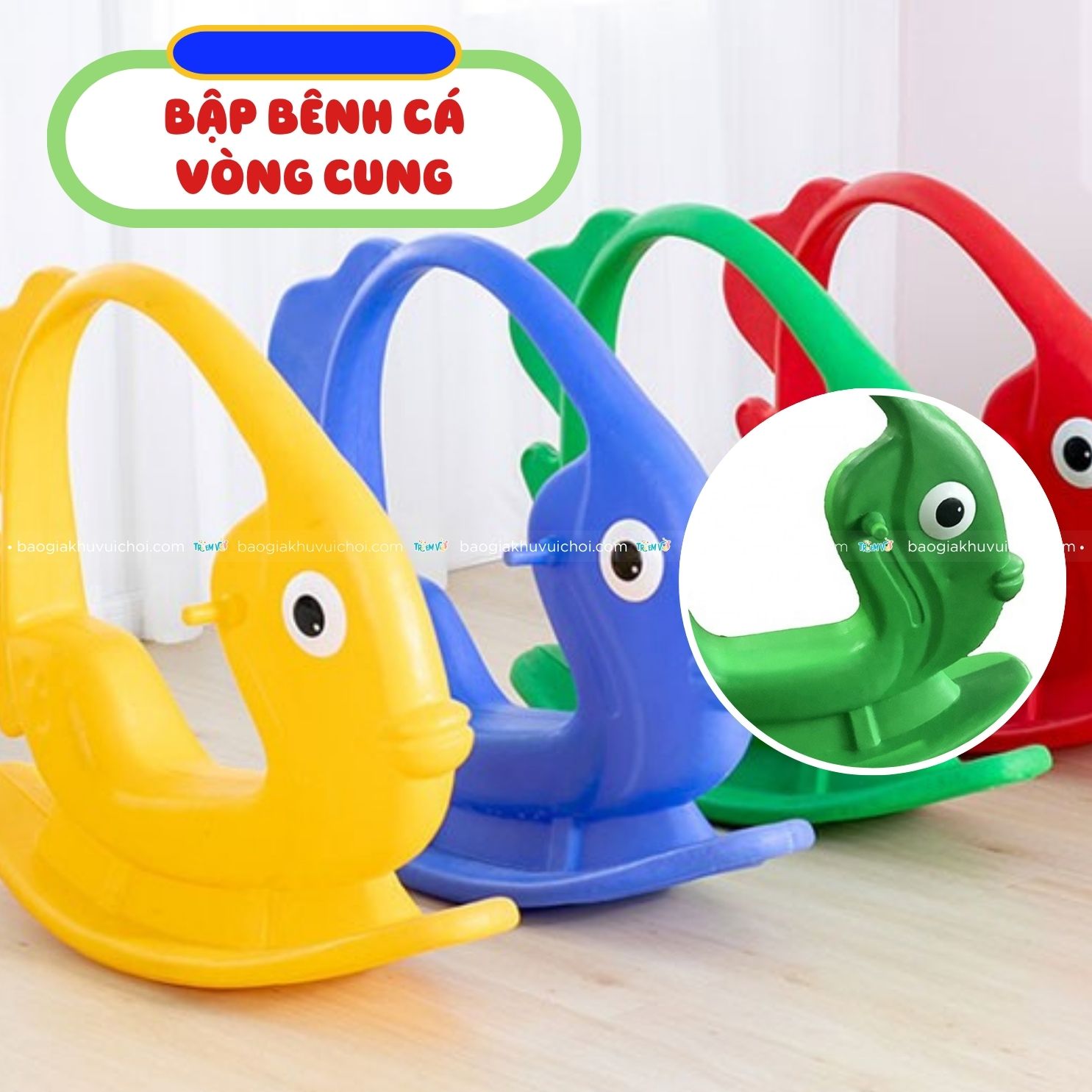 Điểm đặc biệt của bập bênh cá vòng cung là không có góc cạnh rất an toàn cho các bé trong quá trình chơi. Với hình vòng cung trên đầu, các bé vô cùng thích thú khi chơi chiếc bập bênh này.